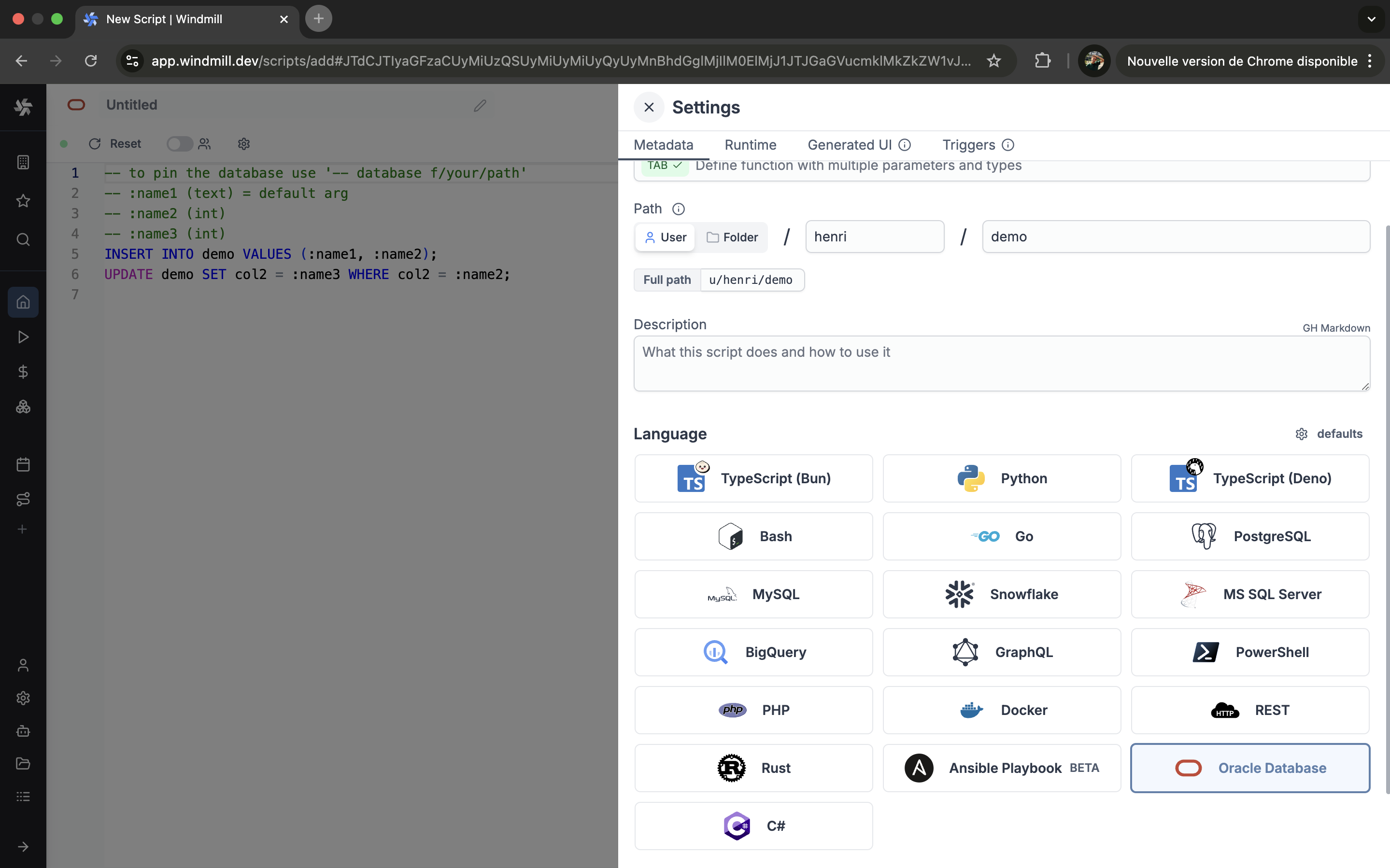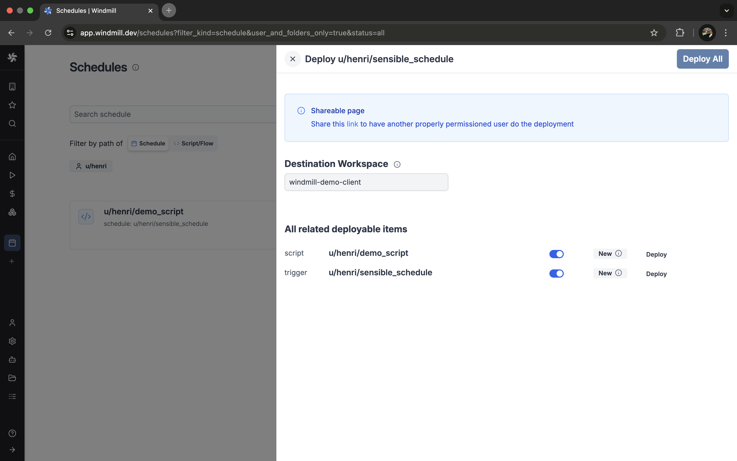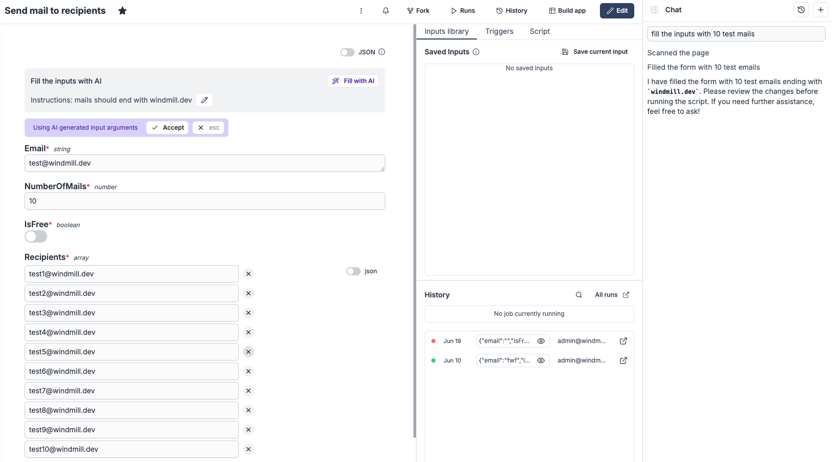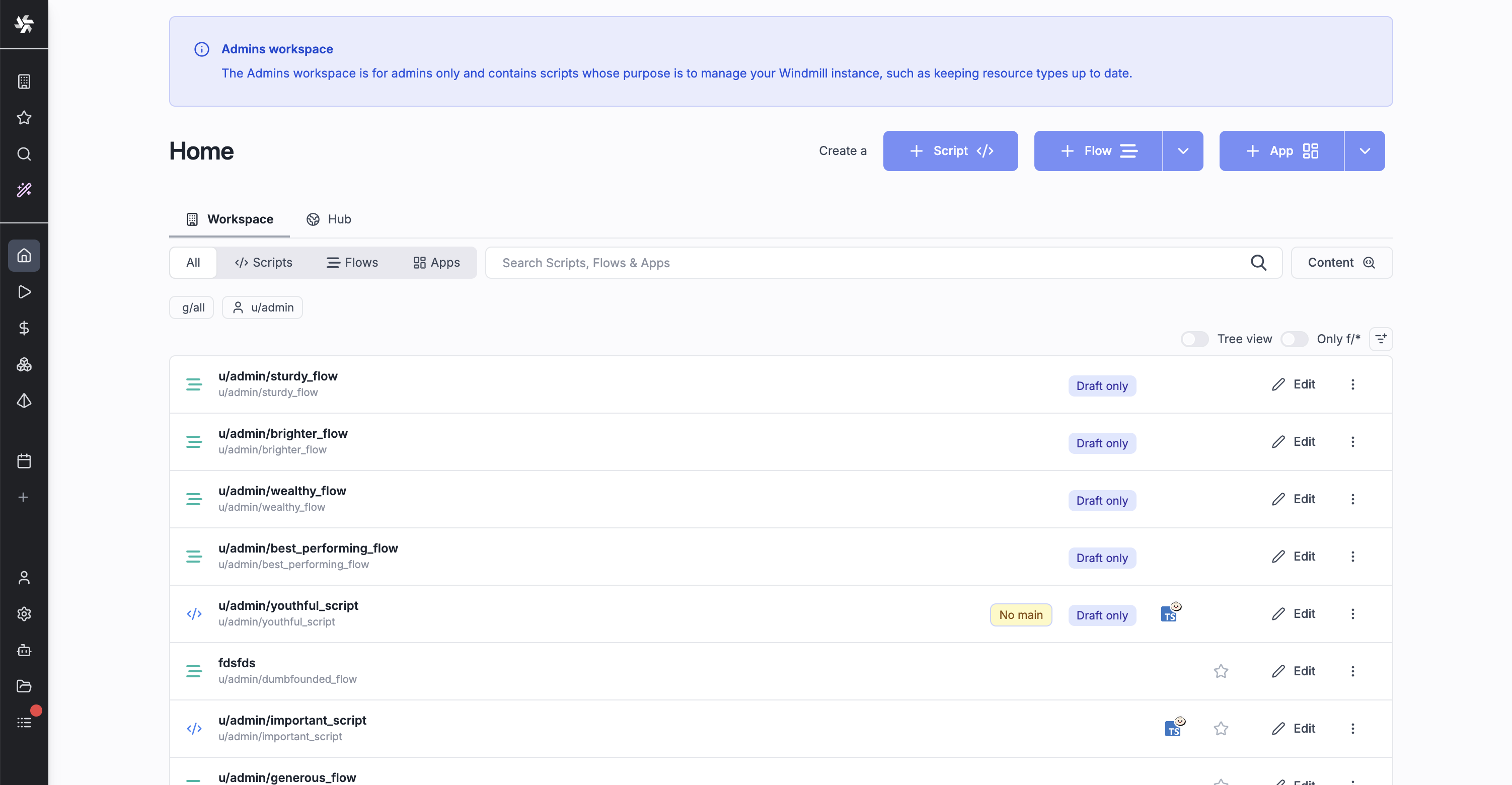 • Trigger scripts with @Windmill in public channels, private channels, DMs, and threads