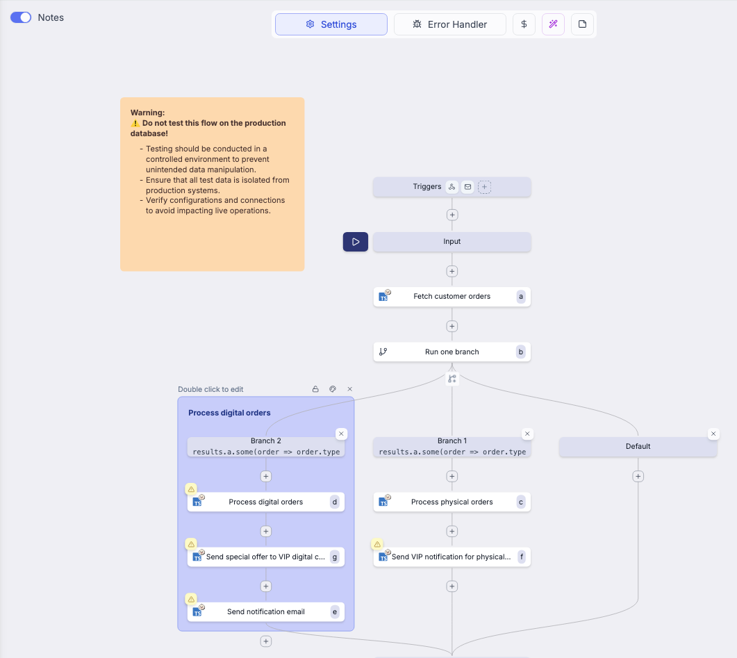 • Free notes that can be placed anywhere on the canvas for general comments, TODOs, or documentation.